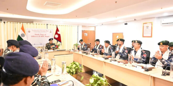 महानिरीक्षक सीमांत मुख्यालय की अध्यक्षता में अन्य वरिष्ठ अधिकारियों तथा एपीएफ नेपाल के अधिकारियों के साथ भारत-नेपाल सीमा पर सुरक्षा व्यवस्था, सीमा प्रबंधन, सूचना आदान-प्रदान एवं आपसी समन्वय को और अधिक प्रभावी बनाने पर सार्थक विचार-विमर्श किया गया। नेपाल के सशस्त्र प्रहरी बल के 19 सदस्यीय प्रशिक्षु अधिकारियों का सोमवार को महानिरीक्षक सीमांत मुख्यालय रत्न संजय ने स्वागत किया। 31 दिसम्बर तक सीमांत लखनऊ में प्रशिक्षण-अध्ययन भ्रमण पर आये इस दल का नेतृत्व शम्भु सुवेदी, उप-महानिरीक्षक, एपीएफ नेपाल द्वारा किया जा रहा है। प्रशिक्षण के दौरान नेपाली प्रशिक्षु अधिकारियों को क्षेत्रक मुख्यालय गोरखपुर, उससे संबद्ध वाहिनियों एवं बीओपी का भ्रमण कराने के साथ एसएसबी की कार्यप्रणाली से अवगत कराया जाएगा। भ्रमण के दौरान नेपाली प्रशिक्षु अधिकारियों का दल अयोध्या स्थित राम मंदिर का भी भ्रमण करेगा।