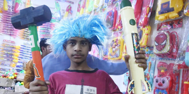 होलिकोत्सव पर्व से पहले इस बार फिर से यहियागंज थोक बाजार तमाम तरह की पिचकारियों से पट गए हैं। ब्रह्मोस सरीखी मिसाइल से तबाही नहीं रंग बरसेगा। बीजेपी के हथौड़े से होरियार रंगों का वार करेंगे। होली के बाजार में कुल्हाड़ी काटेगी नहीं लोगों पर रंग बरसाएगी। मोदी पिट्ठू गन है तो बिग बॉस भी है। ऐसी