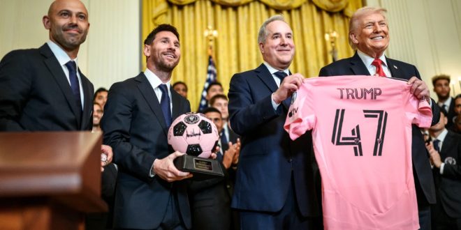 अमेरिका में फुटबॉल के दिग्गज खिलाड़ी लियोनेल मेसी को हाल ही में एक खास सम्मान मिला। दरअसल इंटर मियामी की मेजर लीग सॉकर कप जीत के बाद टीम को व्हाइट हाउस आमंत्रित किया गया, जहां अमेरिका के राष्ट्रपति डोनाल्ड ट्रंप ने मेसी और पूरी टीम का सम्मान किया। यह समारोह व्हाइट हाउस में आयोजित किया गया, जहां इंटर मियामी की ऐतिहासिक उपलब्धि को लेकर खिलाड़ियों को बधाई दी गई। मौजूद जानकारी के अनुसार यह पहली बार है जब ट्रंप के कार्यकाल में किसी मेजर लीग सॉकर टीम को इस तरह व्हाइट हाउस बुलाकर सम्मानित किया गया। बता दें कि पिछले वर्ष इंटर मियामी ने शानदार प्रदर्शन करते हुए मेजर लीग सॉकर कप अपने नाम किया था। इस जीत में लियोनेल मेसी की भूमिका बेहद अहम मानी जा रही है, क्योंकि उनके टीम में आने के बाद से क्लब का प्रदर्शन लगातार बेहतर हुआ है। समारोह के दौरान डोनाल्ड ट्रंप ने हल्के मजाकिया अंदाज में मेसी का स्वागत करते हुए कहा कि यह उनके लिए खास अवसर है, क्योंकि किसी अमेरिकी राष्ट्रपति को पहले कभी लियोनेल मेसी का व्हाइट हाउस में स्वागत करने का मौका नहीं मिला था। गौरतलब है कि इस कार्यक्रम में ट्रंप ने अपने बेटे बैरन ट्रंप का भी जिक्र किया है। उन्होंने कहा कि उनका 19 वर्ष का बेटा मेसी का बड़ा प्रशंसक है और फुटबॉल को काफी करीब से देखता और समझता है। ट्रंप ने बताया कि उनके बेटे ने सुबह ही उन्हें याद दिलाया कि आज व्हाइट हाउस में मेसी आने वाले हैं। उन्होंने कहा कि बैरन न केवल फुटबॉल का बड़ा प्रशंसक है बल्कि मेसी को एक शानदार खिलाड़ी और अच्छे व्यक्तित्व वाले इंसान के रूप में भी देखता है। समारोह के दौरान ट्रंप ने फुटबॉल की चर्चा करते हुए एक और दिग्गज खिलाड़ी क्रिस्टियानो रोनाल्डो का भी जिक्र किया। उन्होंने कहा कि रोनाल्डो भी शानदार खिलाड़ी हैं, लेकिन मेसी का खेल भी उतना ही प्रभावशाली माना जाता है। मौके पर ट्रंप ने मजाकिया अंदाज में यह भी सवाल किया कि क्या मेसी महान फुटबॉलर पेले से बेहतर खिलाड़ी माने जा सकते हैं। उनके इस सवाल पर समारोह में मौजूद लोगों के बीच हल्की मुस्कान और तालियों की गूंज भी सुनाई दी। कार्यक्रम में इंटर मियामी के कई खिलाड़ी मौजूद रहे, जिनमें लुईस सुआरेज़ और रोड्रिगो डी पॉल भी शामिल रहे हैं। इसके अलावा मेजर लीग सॉकर के आयुक्त डॉन गार्बर भी इस समारोह में उपस्थित रहे। इस दौरान इंटर मियामी की ओर से लियोनेल मेसी ने डोनाल्ड ट्रंप को टीम की ओर से हस्ताक्षर किया हुआ फुटबॉल भेंट किया। वहीं क्लब के सह-मालिक होर्हे मास और मुख्य कोच हावियर माशेरानो ने ट्रंप को इंटर मियामी की जर्सी और एक विशेष घड़ी उपहार के तौर पर दी। यह समारोह फुटबॉल और खेल भावना को लेकर एक यादगार पल बन गया, जहां अमेरिका के राष्ट्रपति न