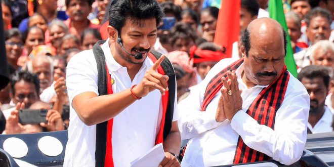 तमिलनाडु के उपमुख्यमंत्री उदयनिधि स्टालिन ने गुरुवार को चेपॉक-थिरुवल्लिकेनी निर्वाचन क्षेत्र के लिए द्रविड़ मुनेत्र कड़गम (डीएमके) के उम्मीदवार के रूप में अपना नामांकन दाखिल किया। मुख्यमंत्री एम.के. स्टालिन के पुत्र उदयनिधि स्टालिन ने नामांकन पत्र जमा करने के लिए रिटर्निंग ऑफिसर के कार्यालय जाते समय