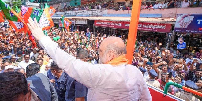 केंद्रीय गृह मंत्री अमित शाह ने रविवार को केरलम के कोझिकोड में एक विशाल रोड शो के जरिए अपनी ताकत दिखाई। बेयपोर विधानसभा क्षेत्र में आयोजित इस कार्यक्रम में उनके साथ बीजेपी उम्मीदवार एडवोकेट के. पी. प्रकाश बाबू और पार्टी के कई वरिष्ठ नेता मौजूद रहे। रोड शो के दौरान समर्थकों की भारी भीड़ उमड़ी, जिसे संबोधित करते हुए अमित शाह ने कहा कि केरल की जनता अब एक मजबूत विकल्प और बेहतर शासन चाहती है। उन्होंने लोगों से राज्य के विकास और सुरक्षा के लिए बीजेपी-एनडीए के पक्ष में मतदान करने की अपील की।