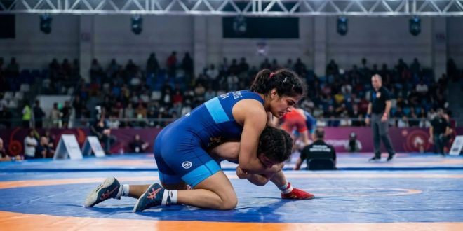 हंसिका लांबा और नेहा ने सीनियर एशियाई कुश्ती चैंपियनशिप में बृहस्पतिवार को भारत के लिए महिला वर्ग में क्रमशः 55 किग्रा और 59 किग्रा वर्ग में कांस्य पदक जीते, जबकि दो बार की राष्ट्रीय चैंपियन मीनाक्षी गोयत ने दक्षिण कोरिया की सियोयंग पार्क को हराकर 53 किग्रा वर्ग के फाइनल में प्रवेश किया। हंसिका ने महिला 55 किग्रा कांस्य पदक मुकाबले में किर्गिस्तान की अरूके कादिरबेक किजी के खिलाफ पहले राउंड में सतर्क खेल दिखाया। दूसरे राउंड के पहले ही मिनट में पैर पर आक्रमण के जरिए उन्होंने अंक हासिल किया और अंततः 6-1 से जीत दर्ज की। नेहा ने महिला 59 किग्रा कांस्य पदक मुकाबले मेंमंगोलिया की बोलोरतुया खुरेल्खू को 10-4 से हराकर भारत के पदकों की संख्या सात तक पहुंचा दी। पुरुष ग्रेको-रोमन पहलवानों ने प्रतियोगिता के पहले तीन दिनों में दो रजत और तीन कांस्य पदक अपने नाम किए थे। मीनाक्षी ने 53 किग्रा वर्ग में विश्व चैंपियनशिप की कांस्य पदक विजेता अंतिम पंघाल को हराकर भारतीय टीम में जगह बनाई थी। वह बृहस्पतिवार को आखिरी 30 सेकंड तक 0-2 से पिछड़ रही थीं, लेकिन 25 वर्षीय पहलवान ने चार अंक वाले थ्रो के साथ अपने प्रतिद्वंद्वी को चौंकाया और फाइनल में प्रवेश किया। फाइनल में उनका सामना चीन की जिन झांग से होगा, जिन्होंने जापान की मोए कियूक्का को पटखनी दी। हर्षिता (72 किग्रा) और मोनिका (65 किग्रा) शुक्रवार को कांस्य पदक के लिए भिड़ेंगी। हर्षिता सेमीफाइनल में जापान की 2024 एशियाई चैंपियन माहिरो योशिटाके से 2-7 से हार गई थीं। अब वह कांस्य पदक के लिए उज्बेकिस्तान की सेविंचॉय पोल्वोनोवा से मुकाबला करेंगी। महिला 65 किग्रा वर्ग में मोनिका क्वार्टर फाइनल में जापान की नाना इकेहाता से हार गई थीं। इकेहाता के फाइनल में पहुंचने से मोनिका को अब कांस्य पदक जीतने का मौका मिलेगा। वह कांस्य पदक के लिए कोरिया की हानबिट ली से भिड़ेंगी। इसके अलावा, मीनाक्षी (57 किग्रा) और मानसी (62 किग्रा) को रिपेचेज दौर के जरिए कांस्य पदक जीतने का अवसर मिलेगा। शुक्रवार को मीनाक्षी (57 किग्रा) का सामना किर्गिस्तान की तानचोलपोन किबालबेकोवा से और मानसी का सामना मंगोलिया की त्सेरेनचिमेद सुई से होगा।